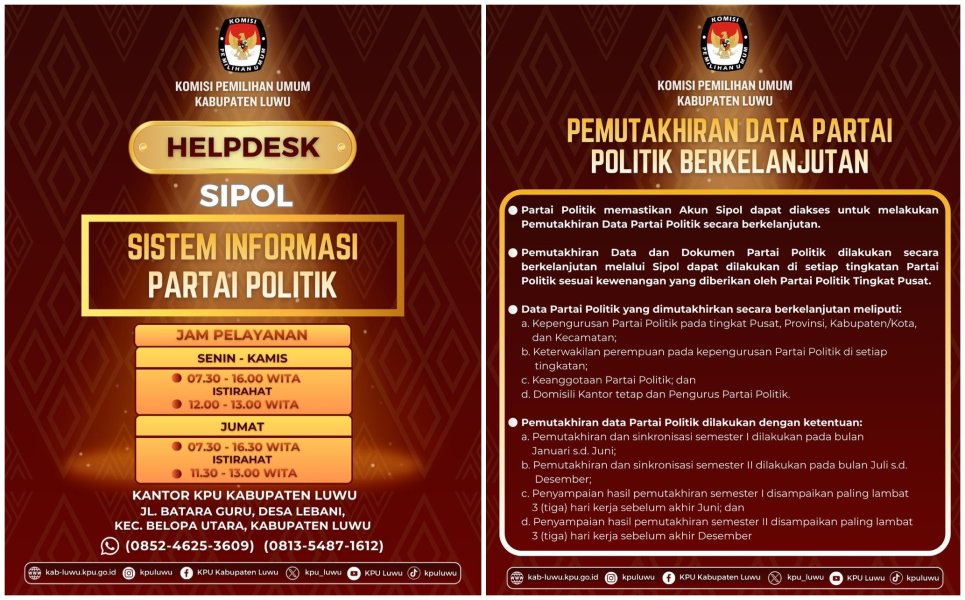 ✨Jam Pelayanan Helpdesk SIPOL KPU Kabupaten Luwu