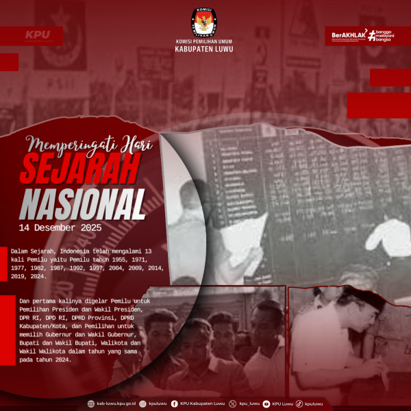 Luwu, Kab-luwu.kpu.go.id. Hari Sejarah Nasional Pemilu di Indonesia menjadi momentum penting untuk mengenang perjalanan panjang demokrasi bangsa melalui penyelenggaraan pemilihan umum. Pemilu pertama yang dilaksanakan pada tahun 1955 merupakan tonggak bersejarah yang menandai komitmen bangsa Indonesia dalam menjunjung tinggi kedaulatan rakyat sebagai fondasi utama negara demokratis.