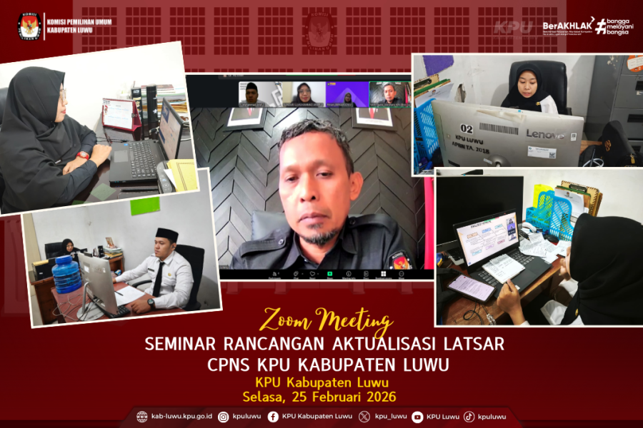 Luwu, Kab-luwu.kpu.go.id, Calon Pegawai Negeri SIpil (CPNS) Komisi Pemilihan Umum (KPU) Kabupaten Luwu mengikuti Seminar Rancangan Aktualisasi Latihan Dasar (Latsar) CPNS Angkatan III secara daring melalui aplikasi zoom meeting, Rabu (25/2/2026). Seminar ini diikuti oleh dua Orang peserta CPNS dari KPU Kabupaten Luwu Yaitu Ainun Magfirah Rahman dan Muhammad Arief.