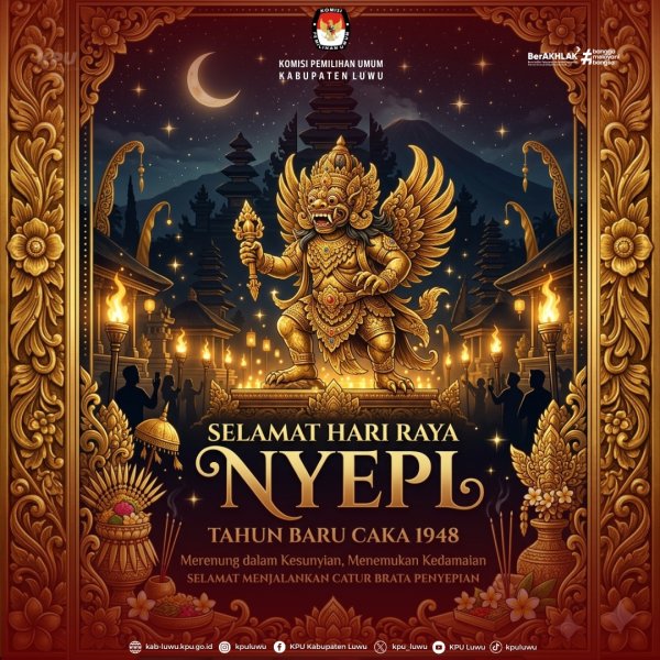 Luwu, Kab-luwu.kpu.go.id, Segenap Pimpinan dan Keluarga Besar Komisi Pemilihan Umum Kabupaten Luwu dengan penuh rasa hormat dan kebersamaan mengucapkan Selamat Hari Raya Nyepi Tahun Baru Saka 1948 / Tahun 2026 kepada seluruh umat Hindu, khususnya yang berada di Kabupaten Luwu dan di seluruh penjuru Nusantara.