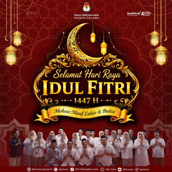 Komisi Pemilihan Umum Kabupaten Luwu mengajak seluruh elemen masyarakat untuk menjadikan momen Idul Fitri ini sebagai titik awal mempererat persatuan dan kesatuan. Dengan semangat kebersamaan dan integritas, mari kita terus berkontribusi dalam mewujudkan demokrasi yang jujur, adil, dan bermartabat, serta menjaga keharmonisan dalam kehidupan bermasyarakat.