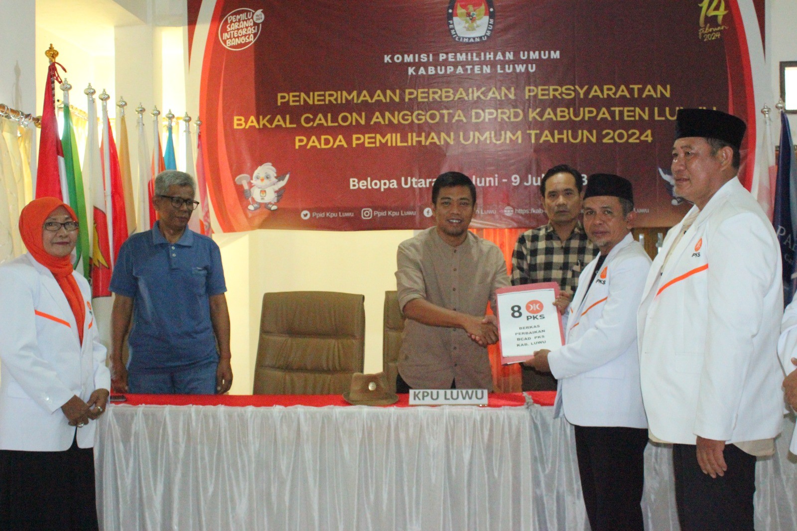 Bakal Calon Anggota DPRD oleh Partai Keadilan Sejahtera (PKS) Kabupaten Luwu dinyatakan lengkap dan diterima.