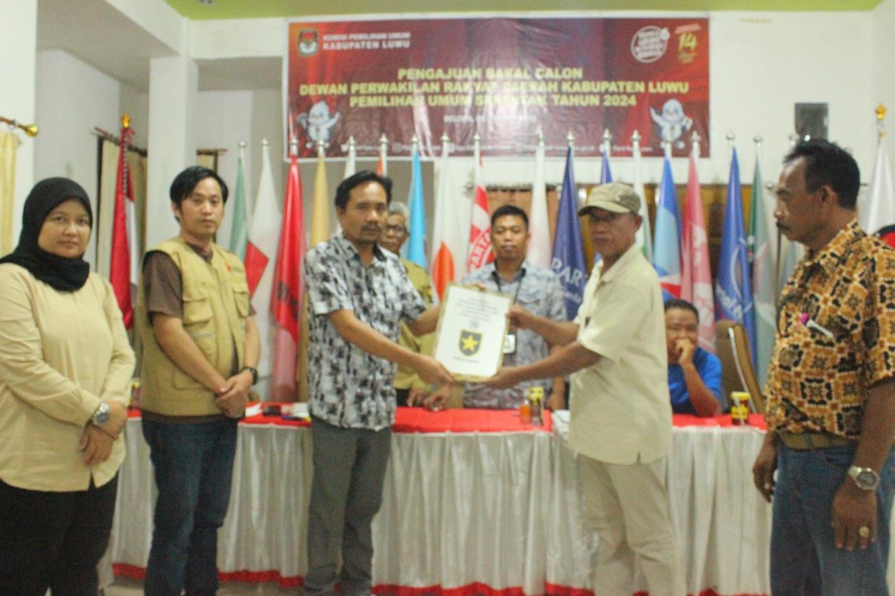 Delegasi partai diterima oleh Ketua KPU Luwu Hasan Sufyan, Anggota KPU Luwu Abdullah Sappe Ampin Maja, Adly Aqsha, dan Muhammad Samsir G. serta disaksikan oleh Bawaslu Luwu di Ruang Media Center KPU Luwu.