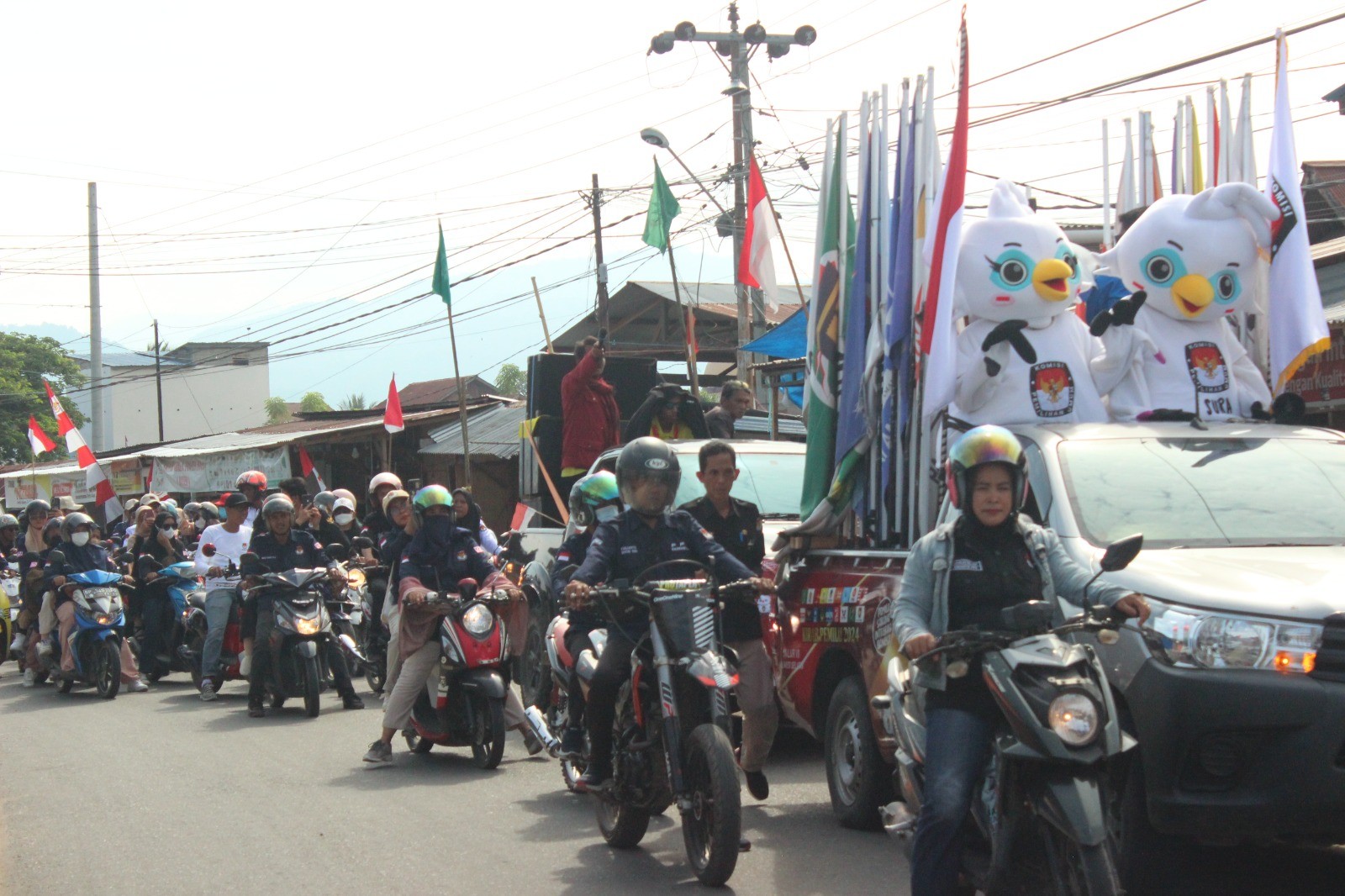 Belopa, luwu-kab.kpu.go.id – Ratusan penyelenggara dari berbagai kecamatan terlihat antusias saat KPU Kabupaten Luwu menggelar pawai kirab Pemilu 2024 di Walenrang - Lamasi, Rabu (23/8/2023)