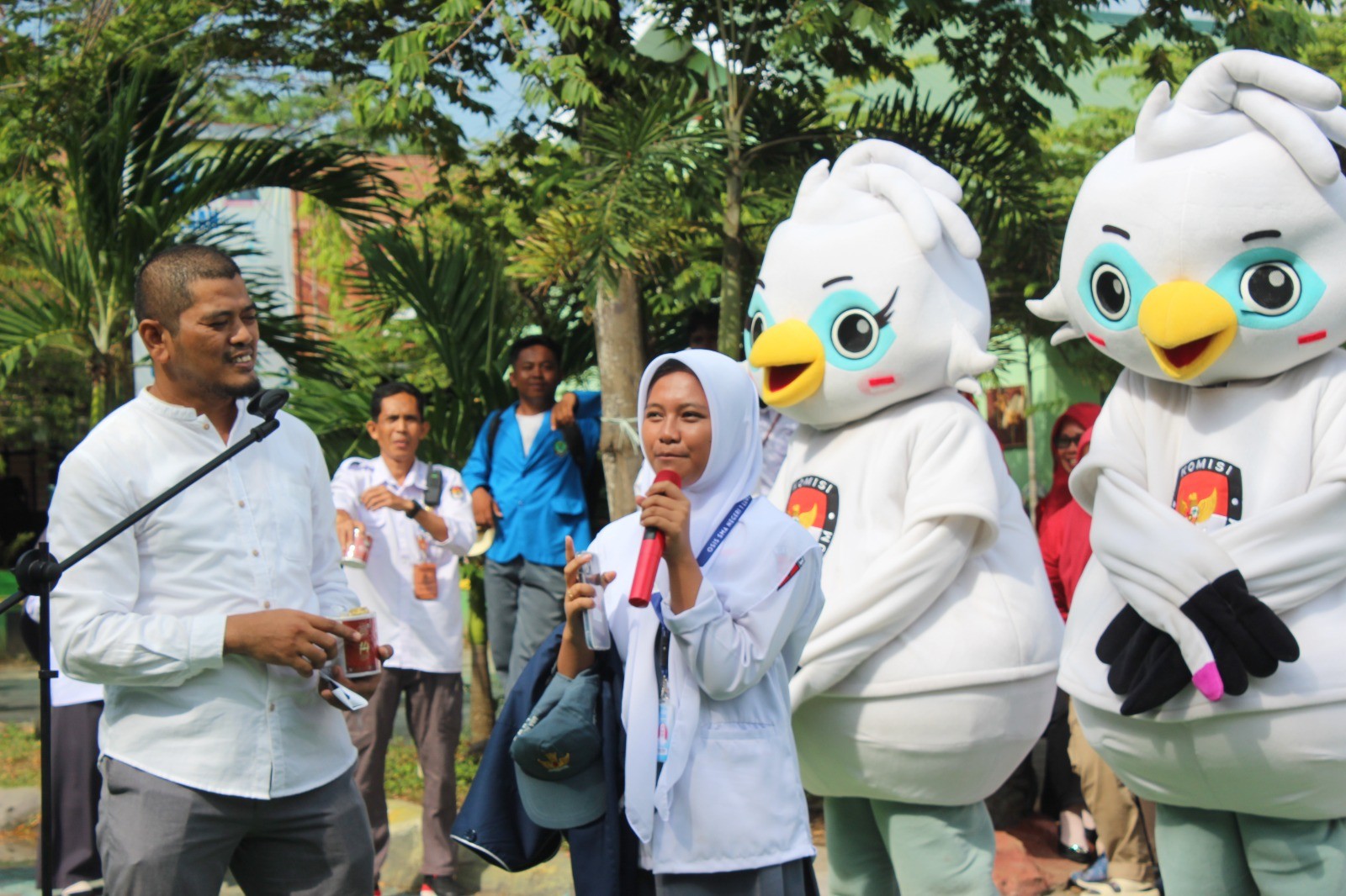 Adly Aqsha, saat di hadapan ratusan siswa menyampaikan bahwa tingginya angka partisipasi pemilu salah satunya berasal dari pemilih pemula yang menggunakan hak pilihnya saat hari pemungutan suara.
