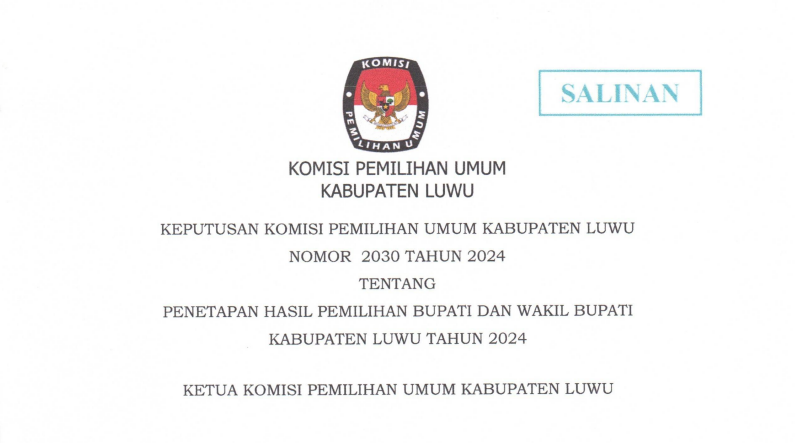 Untuk selengkapnya, isi Penetapan Hasil Pemilihan Bupati dan Wakil Bupati Luwu Tahun 2024 dapat diakses melalui link di bawah ini :